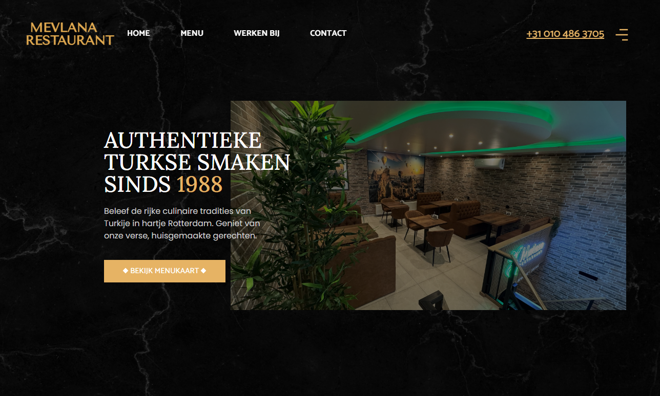 Mevlana Restaurant is een sfeervol Turks restaurant dat bekendstaat om zijn gastvrijheid en authentieke gerechten. Ze wilden hun restaurant ook online professioneel vertegenwoordigen met een moderne, overzichtelijke website.