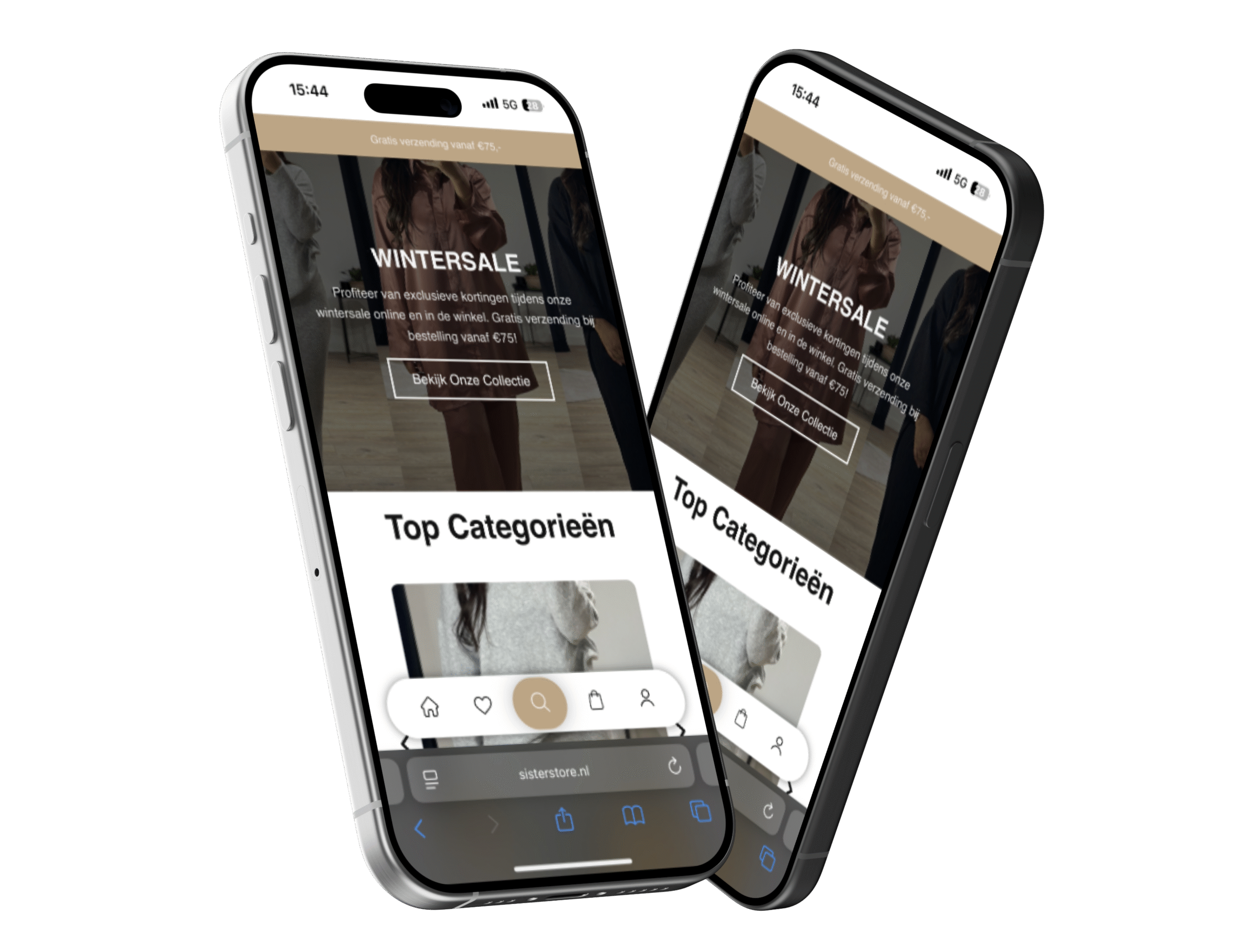 De SisterStore webshop is ontworpen met een focus op elegantie en gebruiksgemak. Klanten kunnen eenvoudig door moderne en traditionele stijlen bladeren, hun favoriete items toevoegen aan hun winkelwagen, en veilig afrekenen, allemaal vanuit hun smartphone.