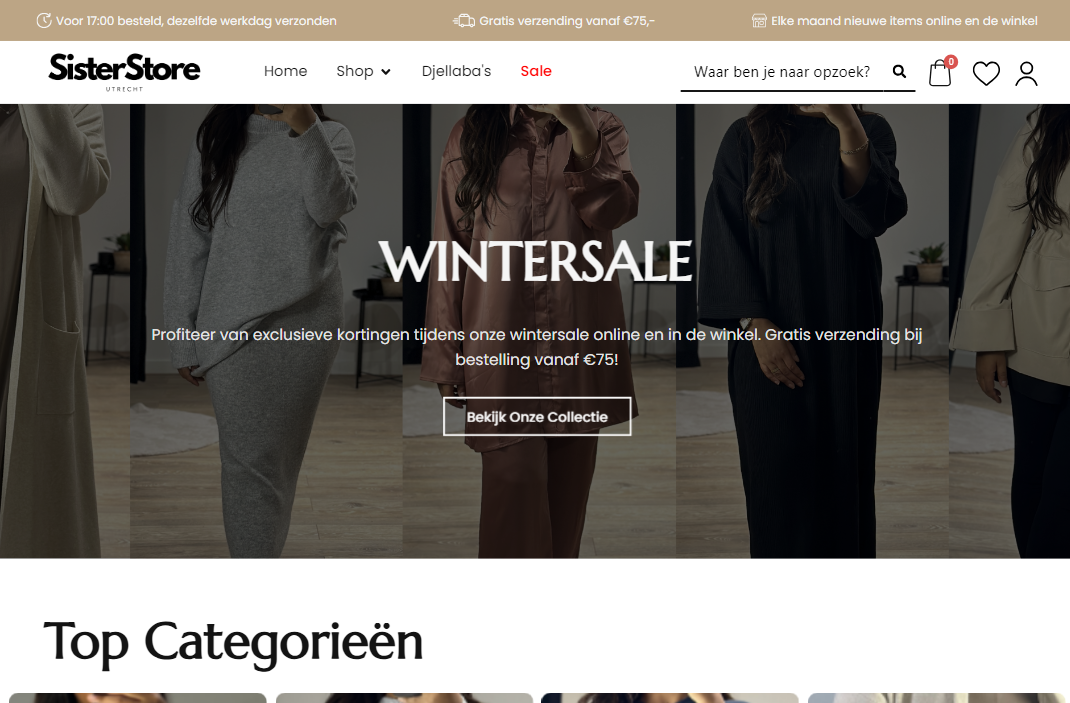 SisterStore is een modewinkel in Utrecht die zich richt op zowel moderne als traditionele Marokkaanse kleding. Ze wilden hun fysieke winkel uitbreiden met een online webshop die zowel hun unieke merk als hun collectie perfect presenteert.